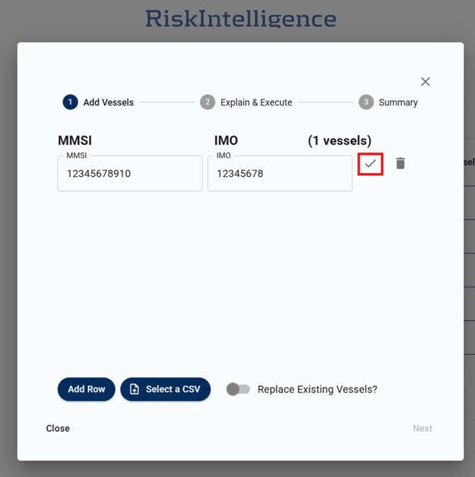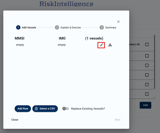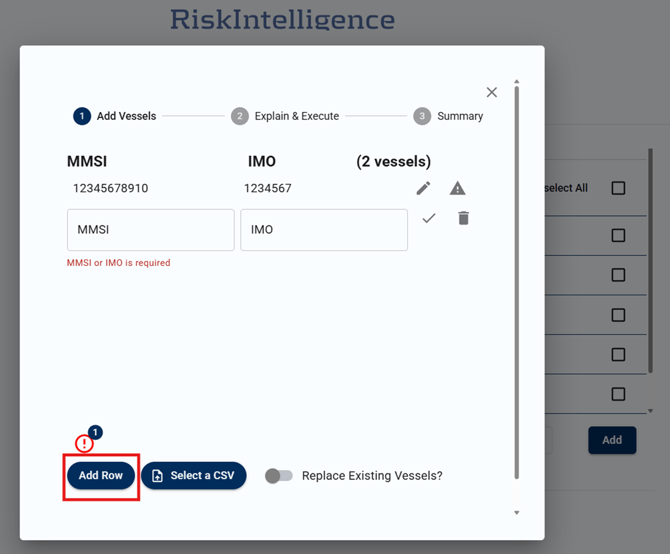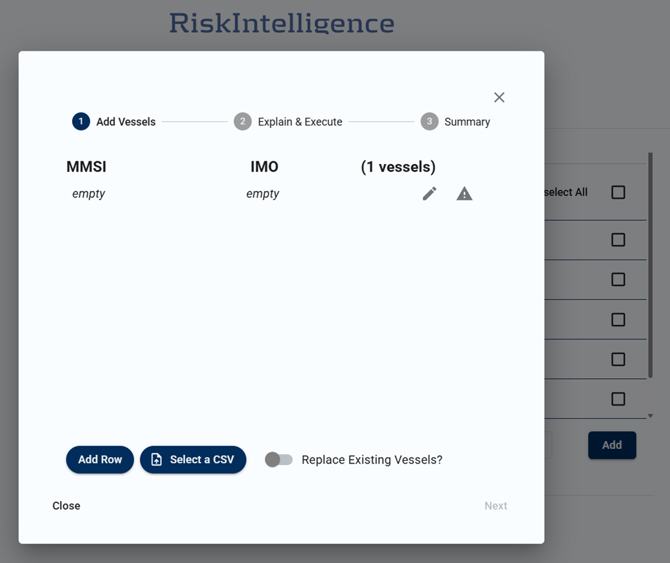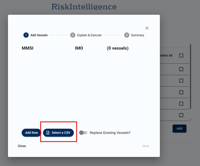 For larger lists, the vessels must be uploaded as a CSV-file via the “Select a CSV” button.