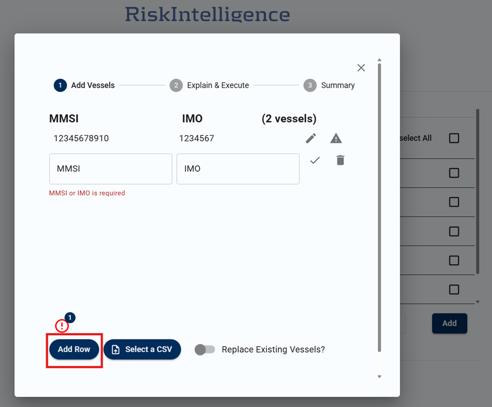 You can also click “Add row”, if you want to add additional vessels immediately: