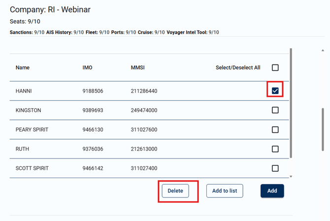 You can also delete vessels from the section, by marking the vessels, and pressing 'Delete'.