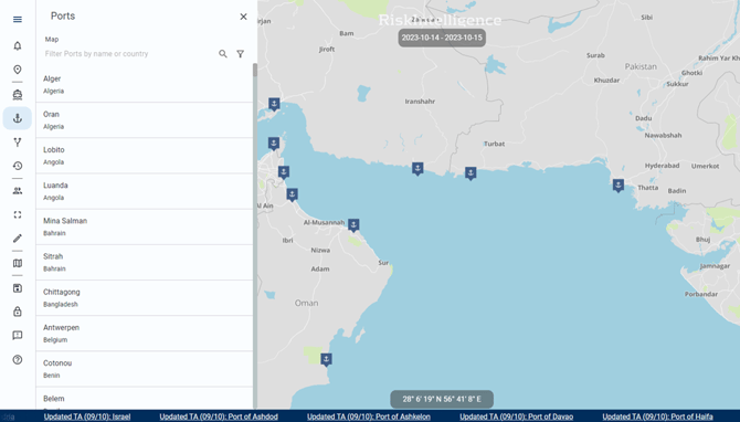 There are 250+ ports currently available in PortRisk and you can search for them in the search bar or you can click on the icon on the map.