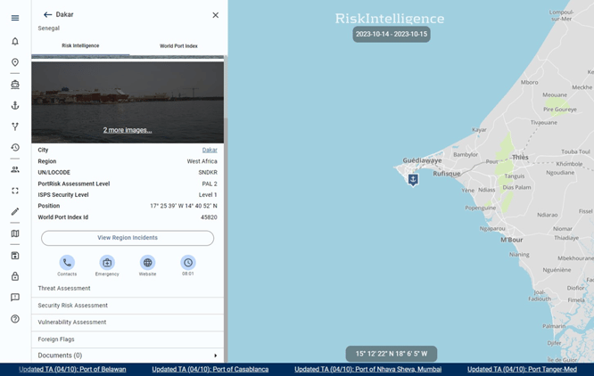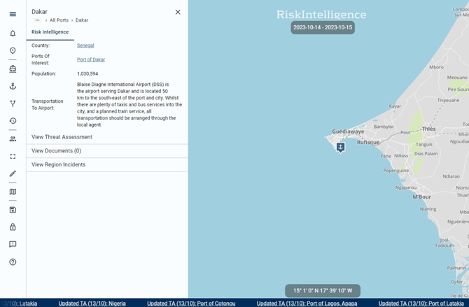 The 'Security Risk Assessment' and 'Vulnerability Assessment' are only available for ports which Risk Intelligence has visited as they contain information based on physical observation and discussion with relevant people there.