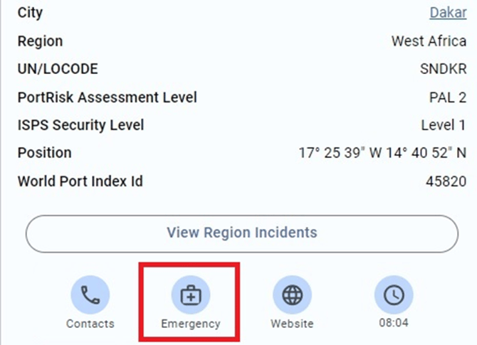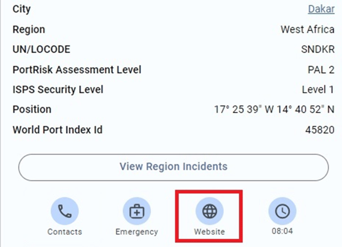 Clicking the 'Website' icon will take you off the Risk Intelligence site and to the Port’s own website. Not all ports have their own website in which case there will be no icon displayed.